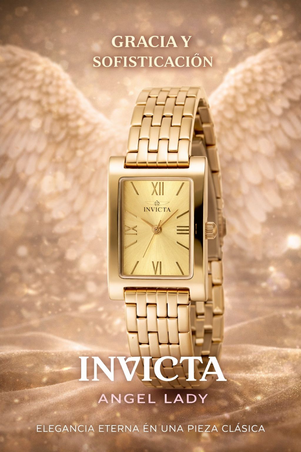 El Invicta Angel es un reloj pensado para mujeres que buscan un accesorio elegante, discreto y funcional. Su caja de 19.5 mm en acero inoxidable dorado y correa del mismo tono crean un diseño uniforme y refinado, perfecto para el uso diario o eventos especiales.