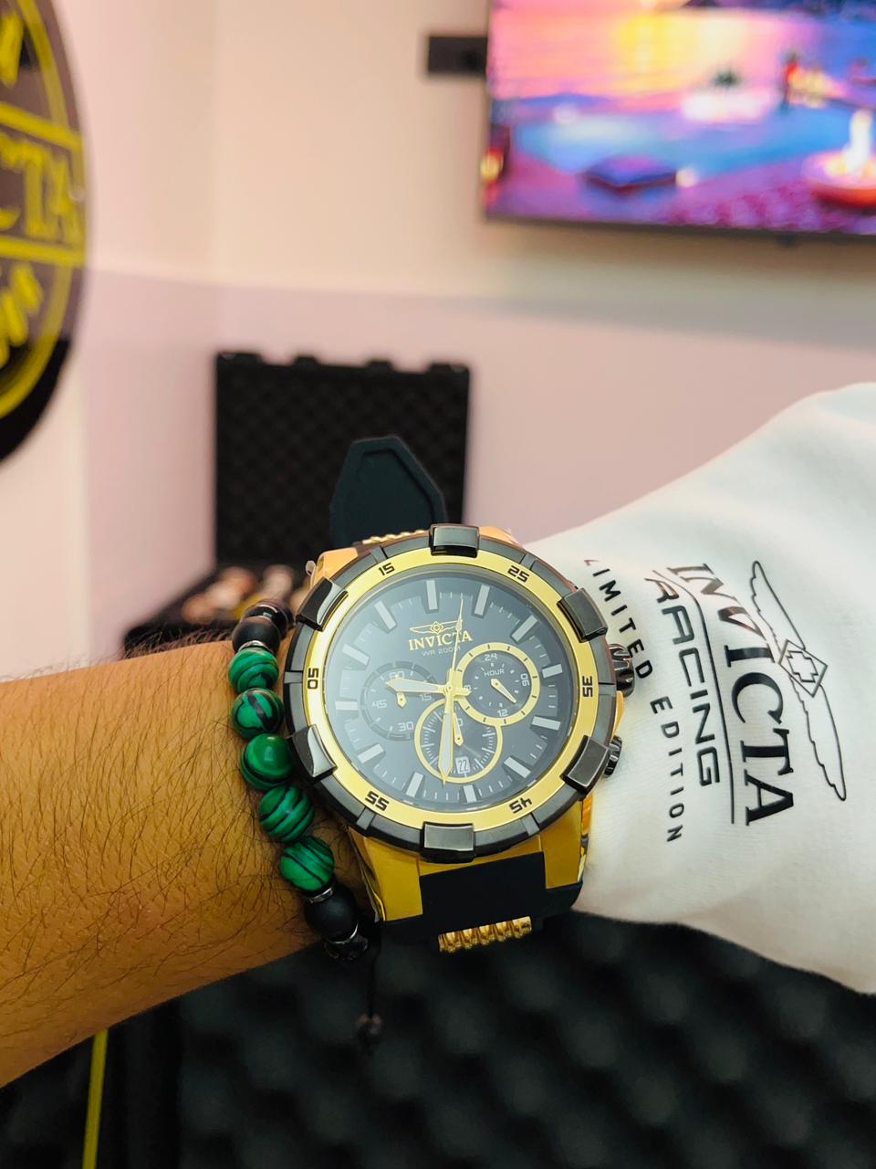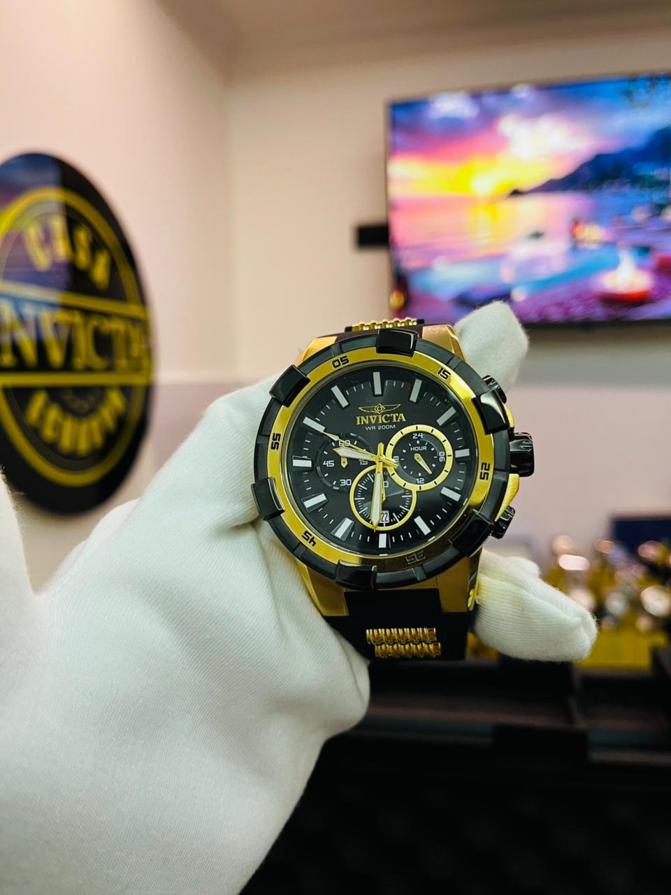 Un reloj robusto y llamativo, ideal para hombres que buscan un accesorio deportivo con carácter, respaldado por la garantía oficial de Casa Invicta Ecuador.