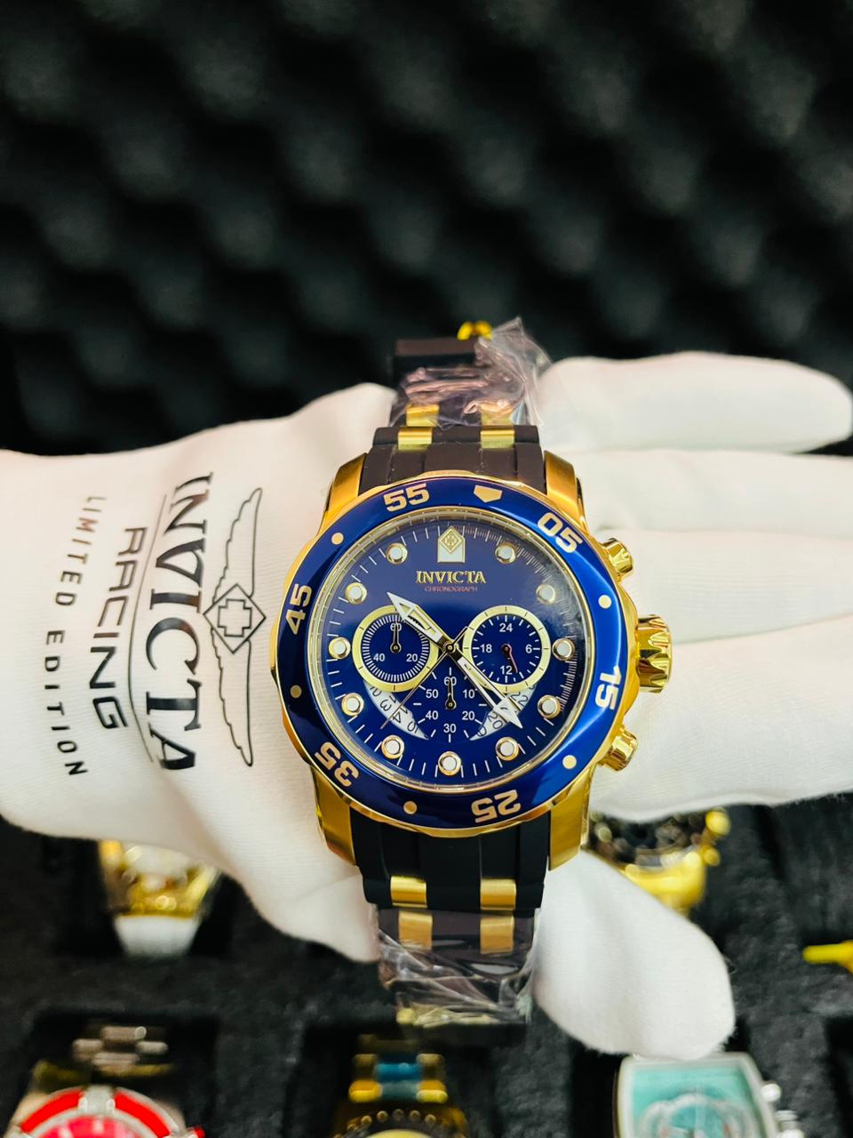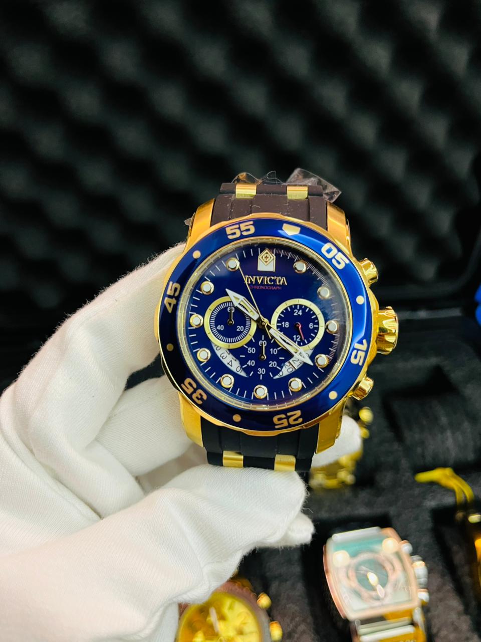 Reloj Invicta Pro Diver Scuba Hombre Dorado Azul Cronógrafo Original Ecuador